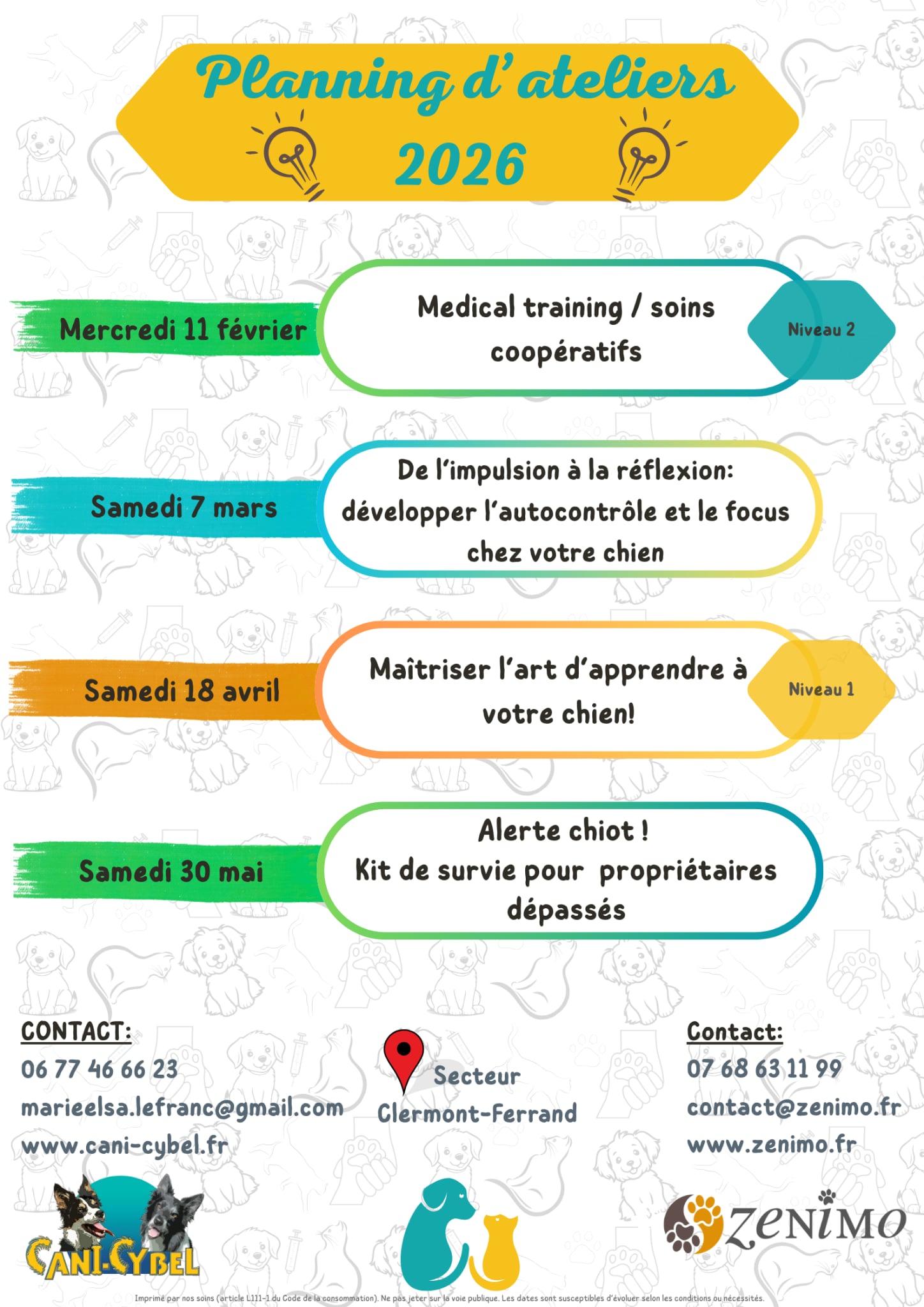 Votre chien a tendance à se laisser distraire par son environnement ? Il n’est pas toujours attentif à vous et vous avez parfois du mal à capter son attention ? Il est souvent impatient et les exercices tels que la marche en laisse sont compliqués ? Participez à notre atelier afin de comprendre comment mieux travailler, le retour au calme, la concentration et l’auto contrôle avec votre chien grâce à des exercices concrets. Afin que votre quotidien devienne plus serein !